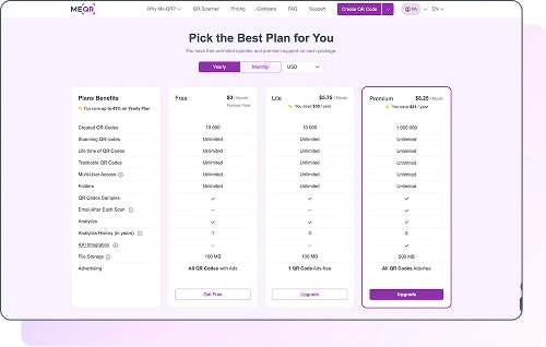 ME-QR’s pricing ($9/month or $69/year for the Lite plan; $15/month or $99/year for Premium) reflects comprehensive functionality within a single platform. Beaconstac’s free tier appears more affordable, but accessing advanced features may require qrcodemonkey.net subscriptions, potentially increasing total costs. ME-QR’s all-inclusive pricing provides transparency.